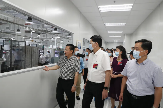 7月14日下午,广西壮族自治区政协主席 宅男视频高清,党组书记蓝天立在桂林市市长秦春成的陪同下,率“引企入桂委员行动”工作推进会参会人员考察深科技桂林公司,深科技常务副总裁陈朱江热情接待。